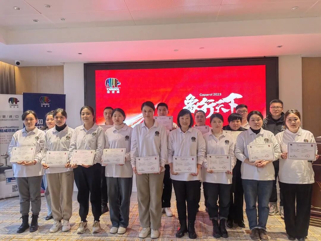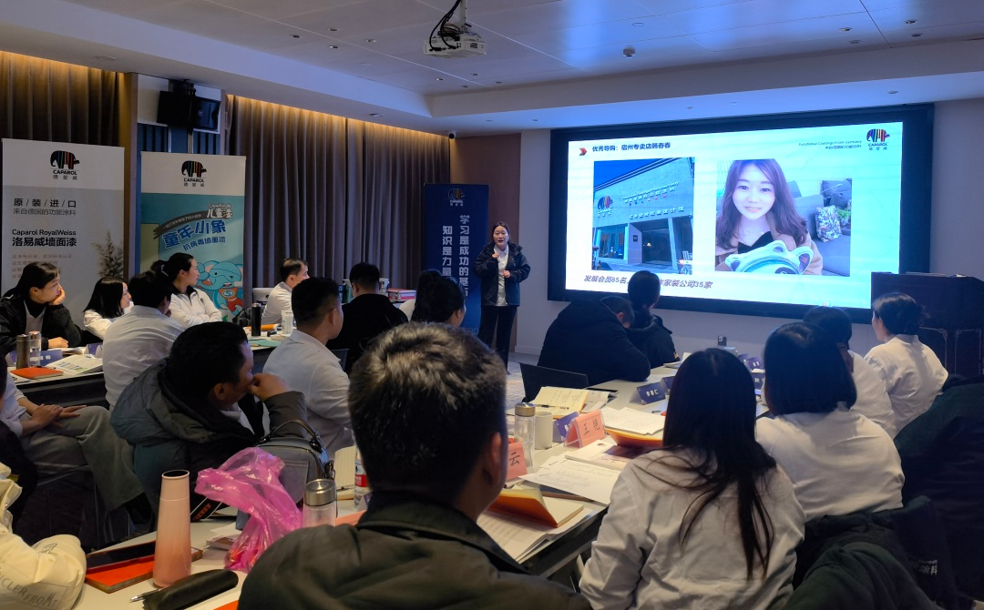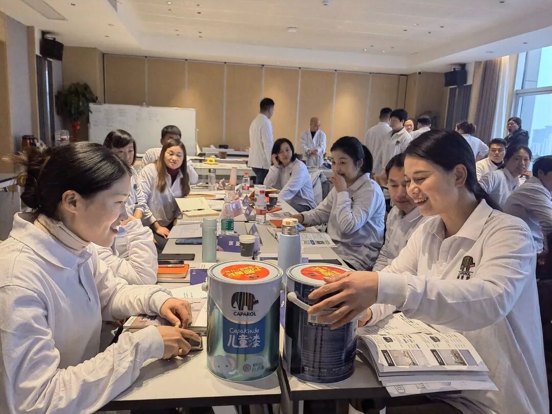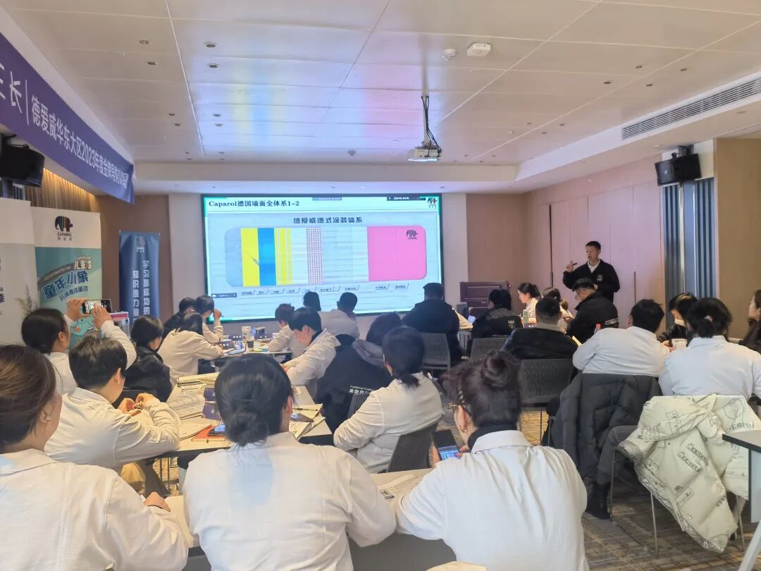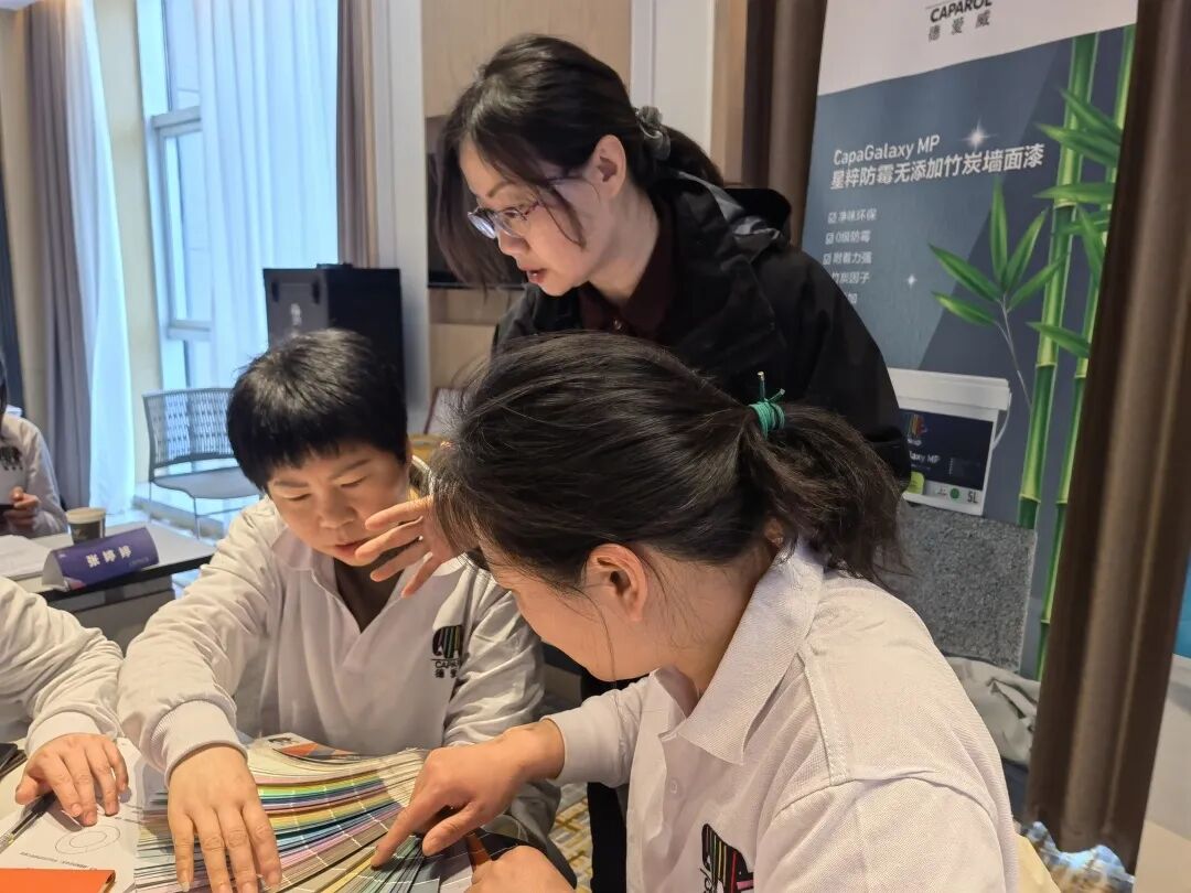 德爱威零售事业部Caparol业务部华东大区经理朱成成、渠道拓展经理杨燕,德爱威总部的培训导师以及来自江苏、安徽省区的优秀导购40余人参加了此次训练营培训。