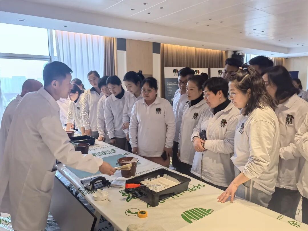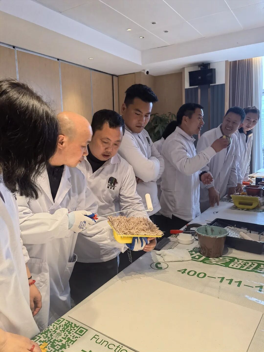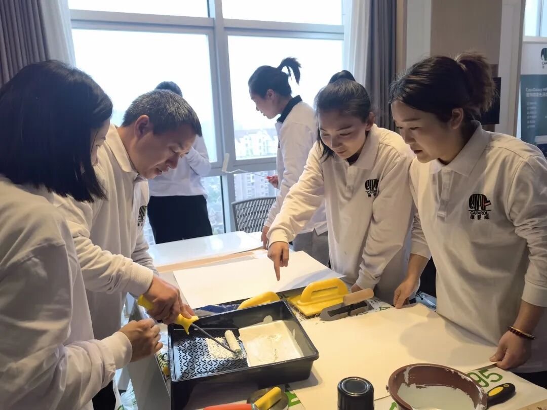 理论与实际结合,概念与实操结合,才能进一步夯实学员们的理论基础,增强动手能力,从而将所学知识最大限度地应用。本次训练营课程设置也更加贴近业务场景,通过艺术漆产品、底漆、中涂和面漆系列实操,让学员们亲自动手感知艺术漆涂刷体系的全过程。