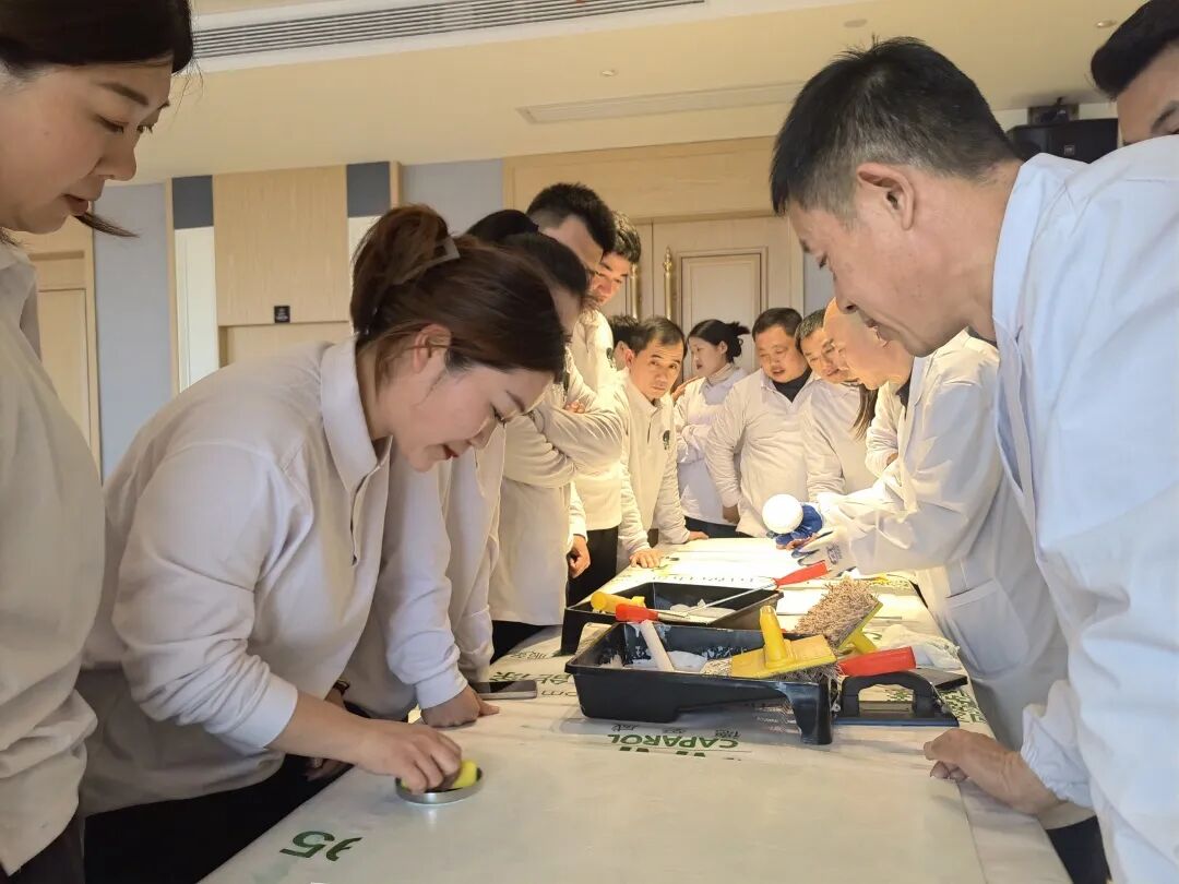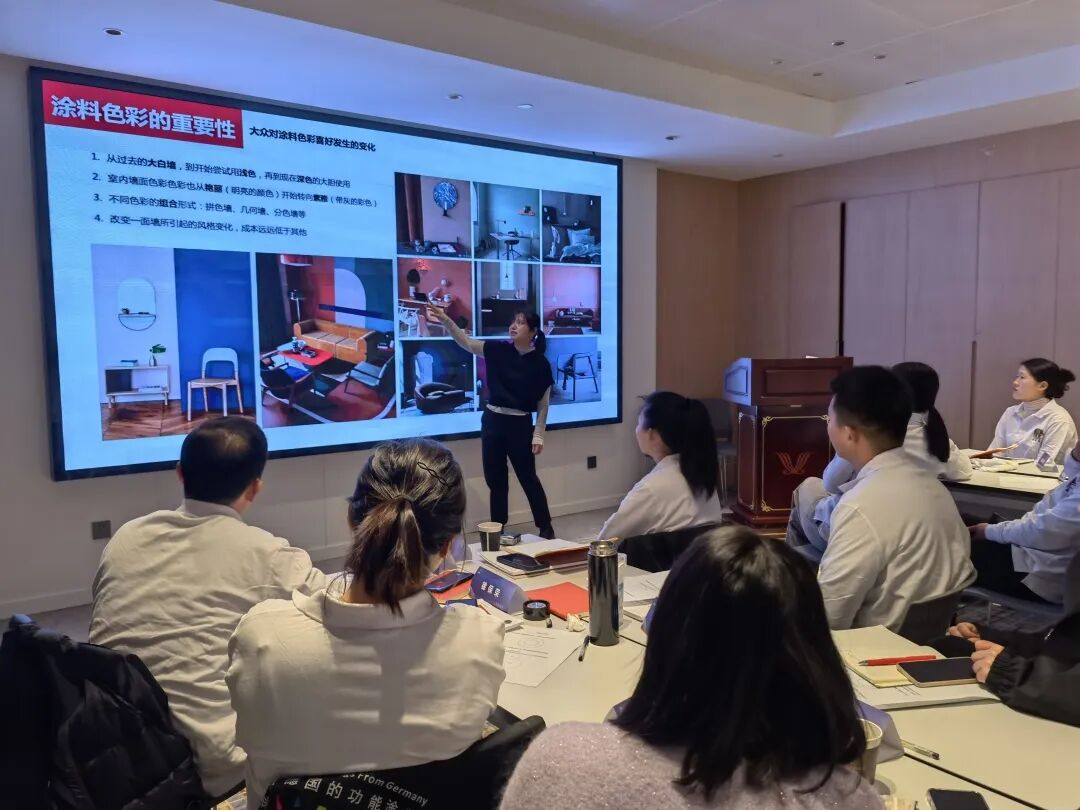 此次培训主要围绕涂料产品基础知识、德爱威产品体系及涂料应用技术,艺术漆产品、店面形象标准、导购激励政策及会员管理,色彩理论、色彩体系及色彩搭配,艺术漆实操展开,辅以店面运营经验分享,让学员们在理论的基础上,通过实践进一步加深印象。